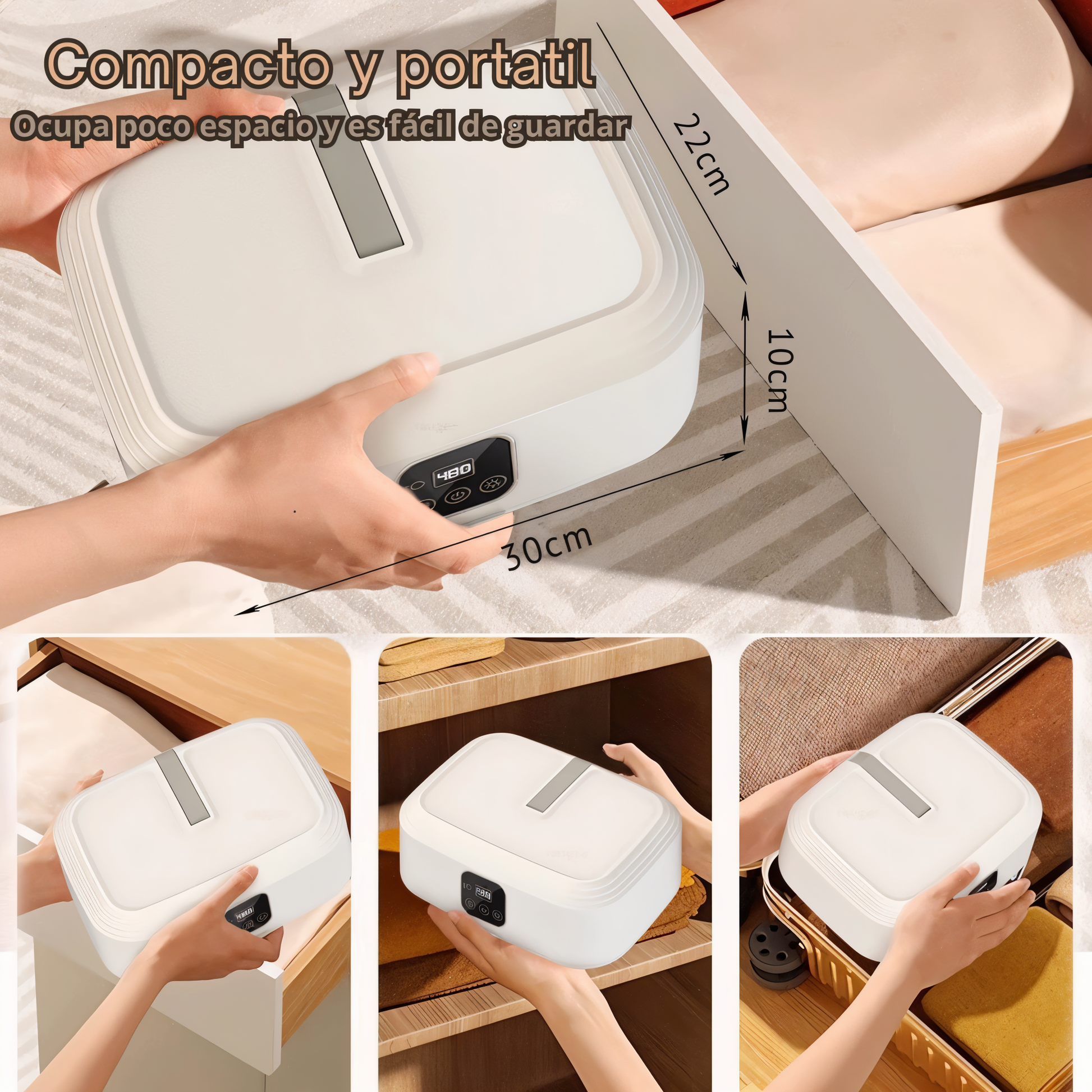 A diferencia de una secadora tradicional que golpea la ropa, nuestra tecnología crea un Vórtice Térmico de 360° dentro de la cubierta protectora. El aire caliente circula suavemente, evaporando la humedad en tiempo récord mientras esteriliza los tejidos y elimina bacterias.